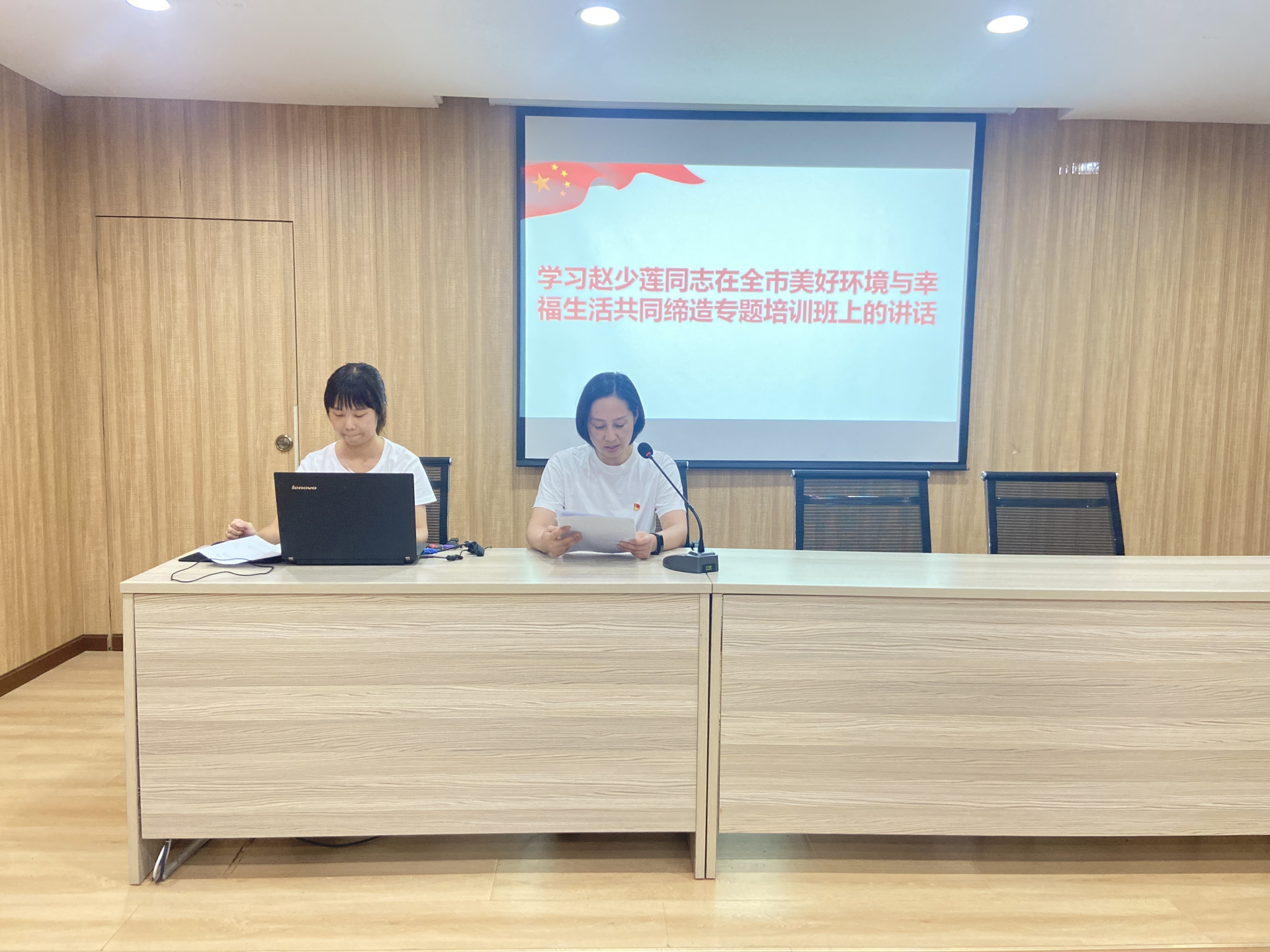 社区纪检委员陈海艳领学赵少莲同志在全市美好环境与幸福生活共同缔造专题培训班上的讲话。