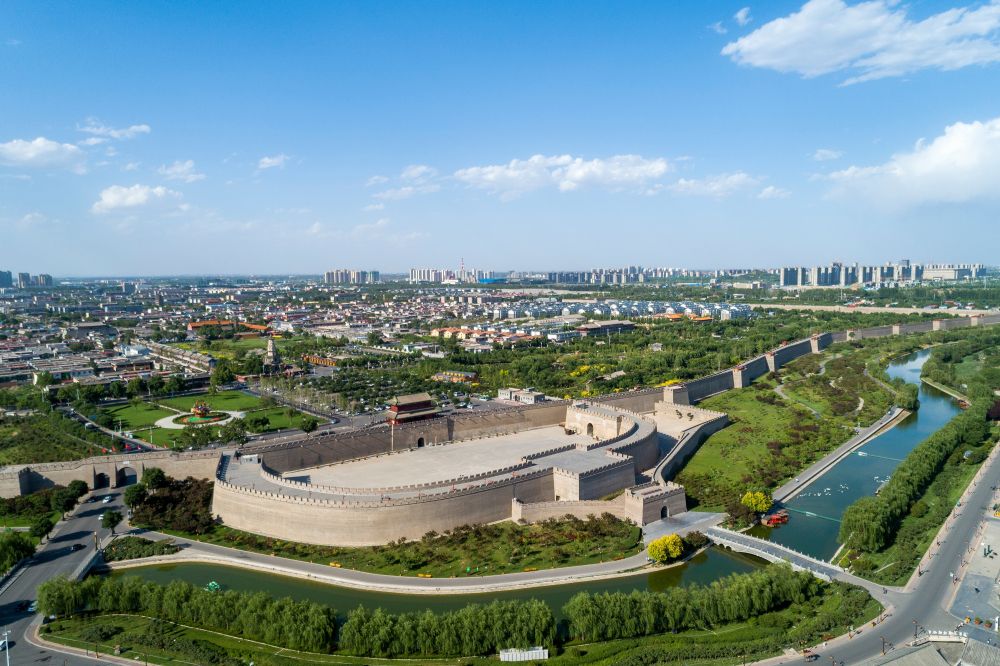 这是蓝天白云掩映下的河北正定古城(2021年6月4日摄,无人机照片)。 新华社记者 朱旭东 摄