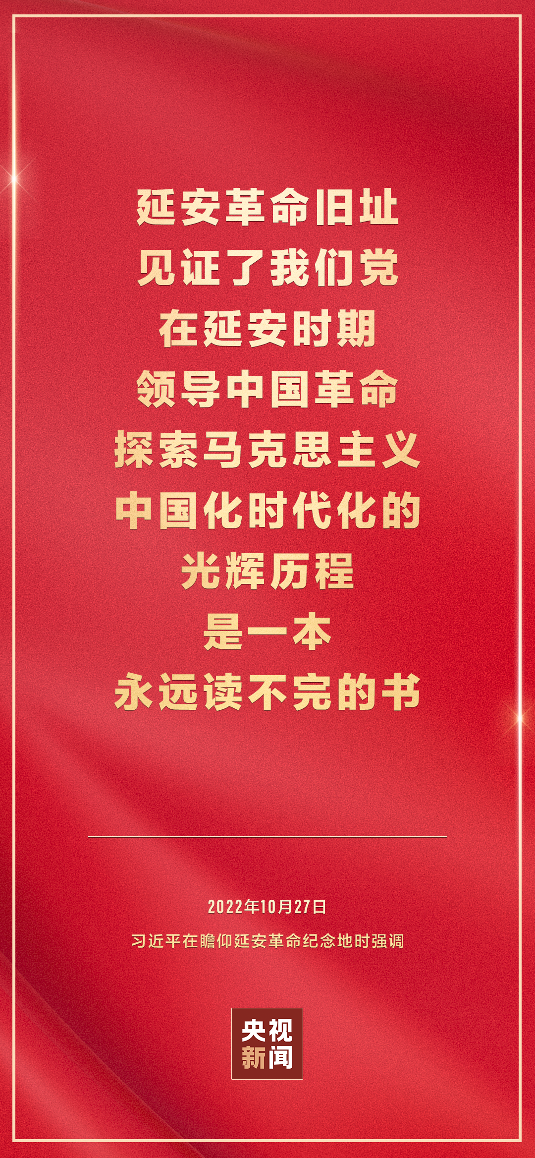 党的二十大闭幕不到一周,中共中央总书记、国家主席、中央军委主席习近平带领中共中央政治局常委李强、赵乐际、王沪宁、蔡奇、丁薛祥、李希,专程从北京前往陕西延安,瞻仰延安革命纪念地。