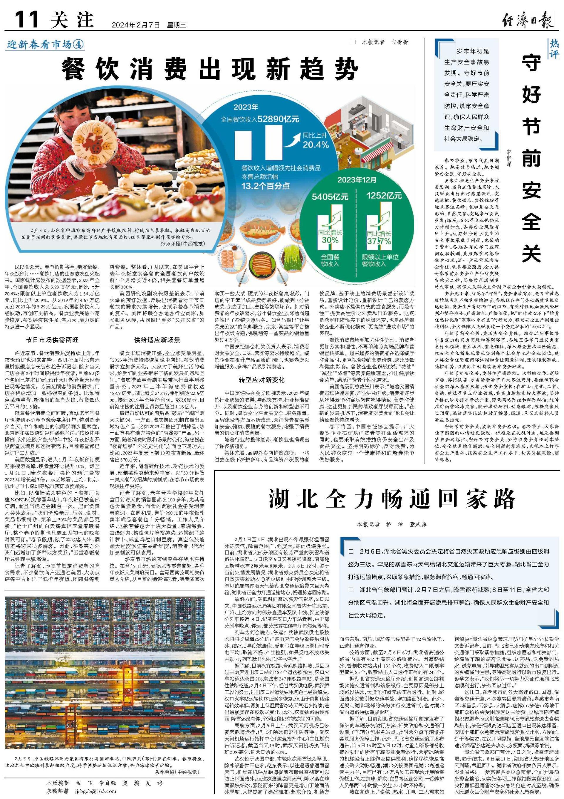 □ 湖北省气象部门预计,2月7日之后,降雪逐渐减弱;8日至11日,全省大部分地区气温回升。湖北将全面开展隐患排查整治,确保人民群众生命财产安全和社会大局稳定。