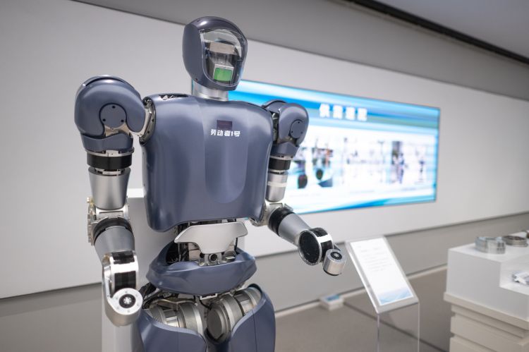 这是在“武创院”展出的一款人形机器人——劳动者1号。新华社记者 肖艺九 摄