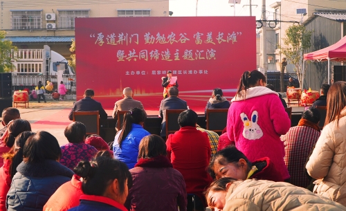 12月30日,“厚道荆门 勤勉农谷 富美长滩”暨共同缔造主题群众文艺汇演活动在长滩办事处长滩埠村移民广场举行。区党工委委员、党群工作部部长王治霞出席活动并为“厚道荆门 勤勉农谷”典型代表颁奖,随后,同长滩办事处的干部群众欢聚一堂,一起欣赏这场共同缔造的文化盛会。