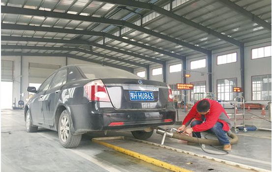 目前,我市环保检测主要采用的是简易工况法,例如稳态工况法就是其中之一。“将车开到指定位置后,把尾气测控探头插入车辆的排气管400mm就可以开始进行尾气检测了,同时,将车速稳定在25公里/时的速度下进行尾气收集,收集时间在25秒-115秒之间,收集完后系统会自动进行判断,并将数据上传。”韩卫军告诉记者,整个过程在3-5分钟内就可完成,然后再将车开到安检线进行安检。