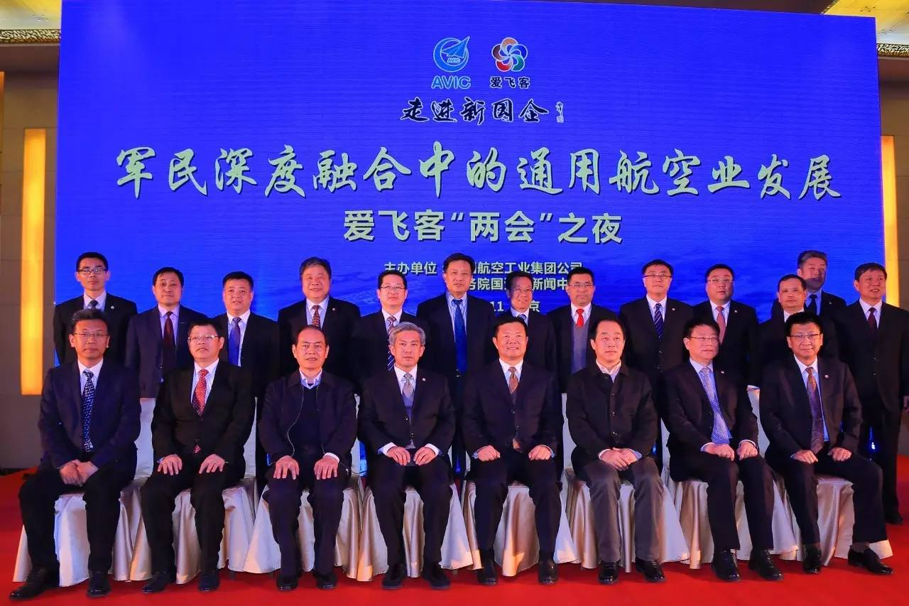 3月11日,由中国航空工业集团公司和国务院国资委新闻中心联合主办,中航通用飞机有限责任公司、中航文化有限责任公司、爱飞客控股有限责任公司承办的“爱飞客‘两会’之夜——‘两会’代表、委员畅谈军民深度融合中的通航产业发展”在北京钓鱼台国宾馆举行。活动现场,来自全国各地的300余名“两会”代表、委员与相关专家学者、有关地方政府领导与企业家代表集思广益,共同探讨军民深度融合背景下通用航空业发展方略,谋划爱飞客通航运营业服务于地方经济融合发展之道,以期实现助推区域经济结构转型和引领我国通航产业发展共赢局面。