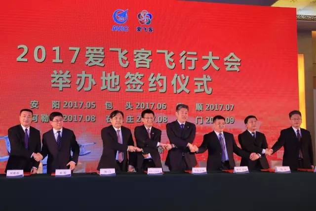 活动中,中航通用飞机有限责任公司董事长、分党组书记曲景文,中航文化有限责任公司董事长、党委书记宋庆国与安阳、包头、安顺、阿勒泰、石家庄、荆门6城市政府代表分别签订了“2017年爱飞客飞行大会框架协议”,公布了2017年爱飞客飞行大会在全国举办计划。中国航空工业集团公司民机产业部副部长、通航办主任孙兵发布了中国航空工业5.15全国“通航日”举办计划。中航通用飞机有限责任公司副总经理李东涛与武汉开发区管委会副主任、汉南区副区长彭训超、中国宏泰发展高级副总裁刘琳共同签署了武汉中航宏泰通航产业综合示范区项目合作备忘录。